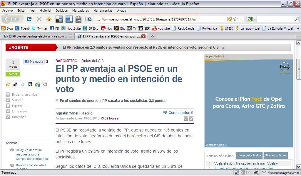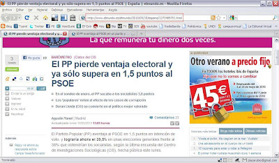 La verdad es que el primer titular no hace referencia a la verdadera noticia, que es que el PP va para atrás y el PSOE para adelante.